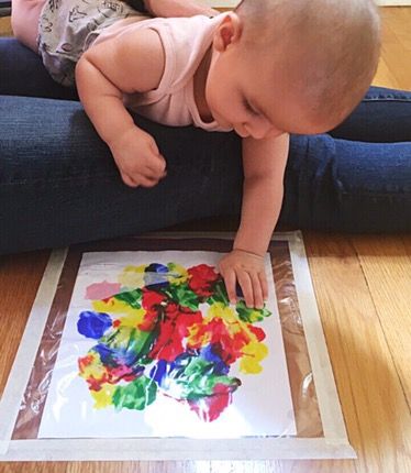 Creating a collage with contact paper is another great way to introduce sensory experiences to infants. This project will help infants explore how “stickiness” feels, as they practice sticking, removing, and re-sticking a variety of different textures. Any pieces of scrap fabric, paper, or even natural materials from outside (such as leaves, flowers, or sticks) can be used to make beautiful and unique collages.If you do not have contact paper on hand, a similar activity can be set up using large sheets of construction paper and stickers. If you have a low window or glass door, young children can enjoy watching the light shine through the different colors and shapes placed on the glass.Here are some more ideas for adding fun, variety, and learning to this activity…