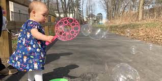 Babies who are able to grip small objects can help with this experiment by dropping the chalk into the vinegar when it is time. Younger infants can watch as the bubbles magically appear.